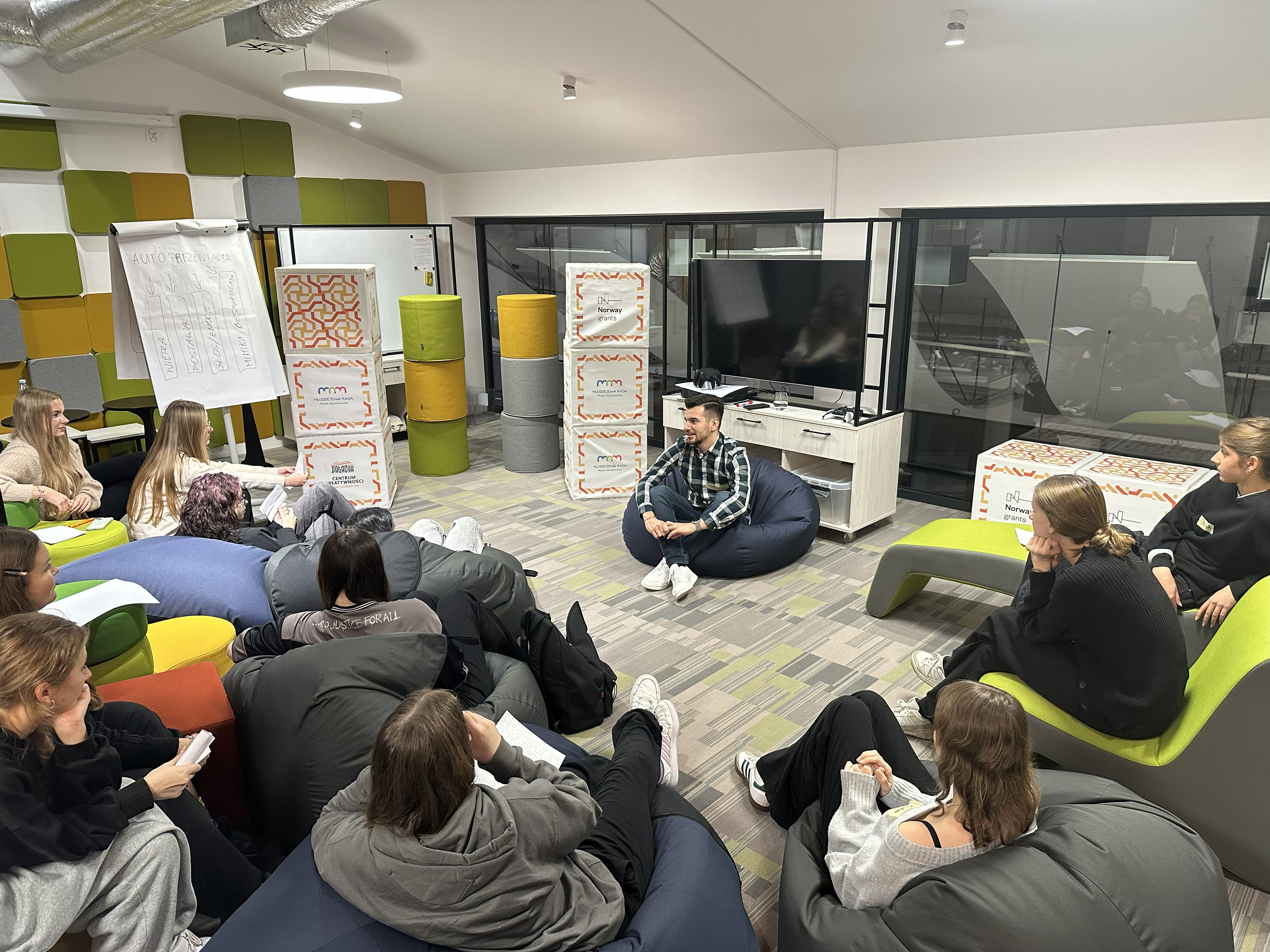 Pierwszy moduł szkolenia skupiał się na rozwoju umiejętności skutecznego przedstawiania siebie i swoich pomysłów. Uczestnicy dowiedzieli się, jak budować pewność siebie i pozytywny wizerunek w różnych sytuacjach – zarówno podczas wystąpień publicznych, jak i w mniej formalnych rozmowach. Warsztaty obejmowały zagadnienia takie jak: